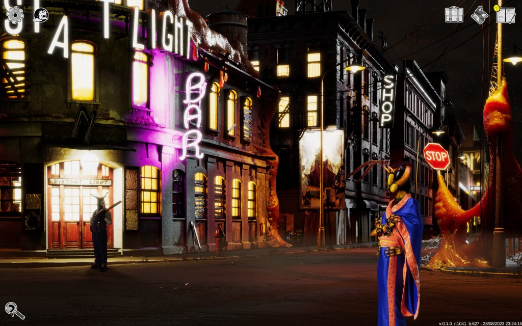 Autre point important : il s’agit ici de la version PC. Pour autant, et bien que ma config (fournie par Razer) vienne tout droit du futur, vous pouvez pousser un grand « Ouf ! » de soulagement, tant ce Chicken Police deuxième du nom pourrait aisément tourner sur des machines à écrire des années 1940 (ou presque). D’ailleurs, et ce sera la dernière précision de la journée, sachez qu’aucune date de sortie ne m’a été confirmée. Tout ce que l’on sait, c’est que le jeu arrive « courant 2024 ».