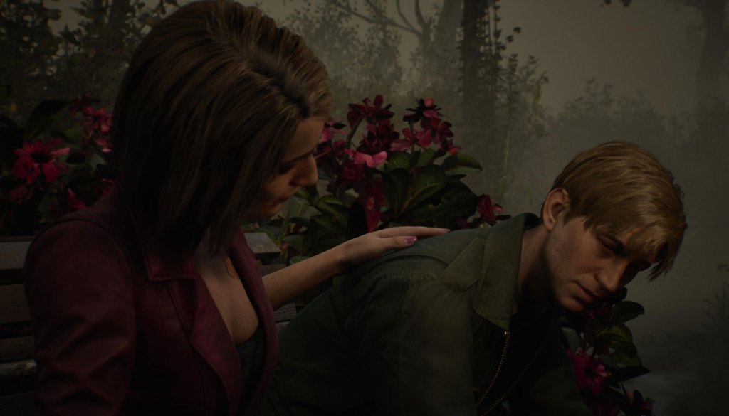 Et puisque, tout comme cette silencieuse colline vous avez des yeux, très vite vous remarquerez que le projet a été développé par Bloober Team (le studio polonais responsable des Layers of Fear, ainsi que du très moyen The Medium). Autrement dit, hormis le nom prestigieux de la franchise adaptée ici, ce remake n’est ni plus ni moins qu’un AA. Hélas, cela explique beaucoup de choses. Car dans ce Silent Hill 2 millésimé 2024, tout fait vraiment cheap. Du rendu visuel global aux doublages tout juste corrects (aucune VF à l’horizon d’ailleurs, ce sera anglais ou japonais uniquement), sans parler des animations vraiment datées, du design des ennemis qui a perdu tout son « charme » d’antan, ou encore des personnages-clé qui ont été beaucoup trop modifiés également (RIP la Maria de 2001).