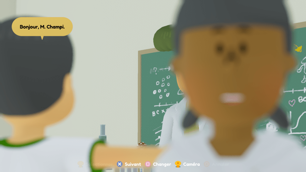 Manette en mains, vous alternez donc entre phases purement narratives (sur lesquelles vous n’avez aucun contrôle), exploration et mini-jeux. Concernant ces derniers, il vous sera par exemple demandé d’ingurgiter votre petit-déjeuner, de réussir des épreuves d’EPS, de tourbillonner pour vous envoler, ou encore de vous laver les dents. Le twist vient bien entendu du mal fou que vous avez à gérer les gestes les plus banals du quotidien. À la manière d’un Octodad ou d’un Surgeon Simulator, vous allez donc devoir composer avec les joysticks gauche et droite (pour bouger les bras et la tête), la touche Triangle pour sauter, Carré pour se parler à soi-même, Cercle pour courir, et enfin L1 et R1 pour ce qui est des mains.