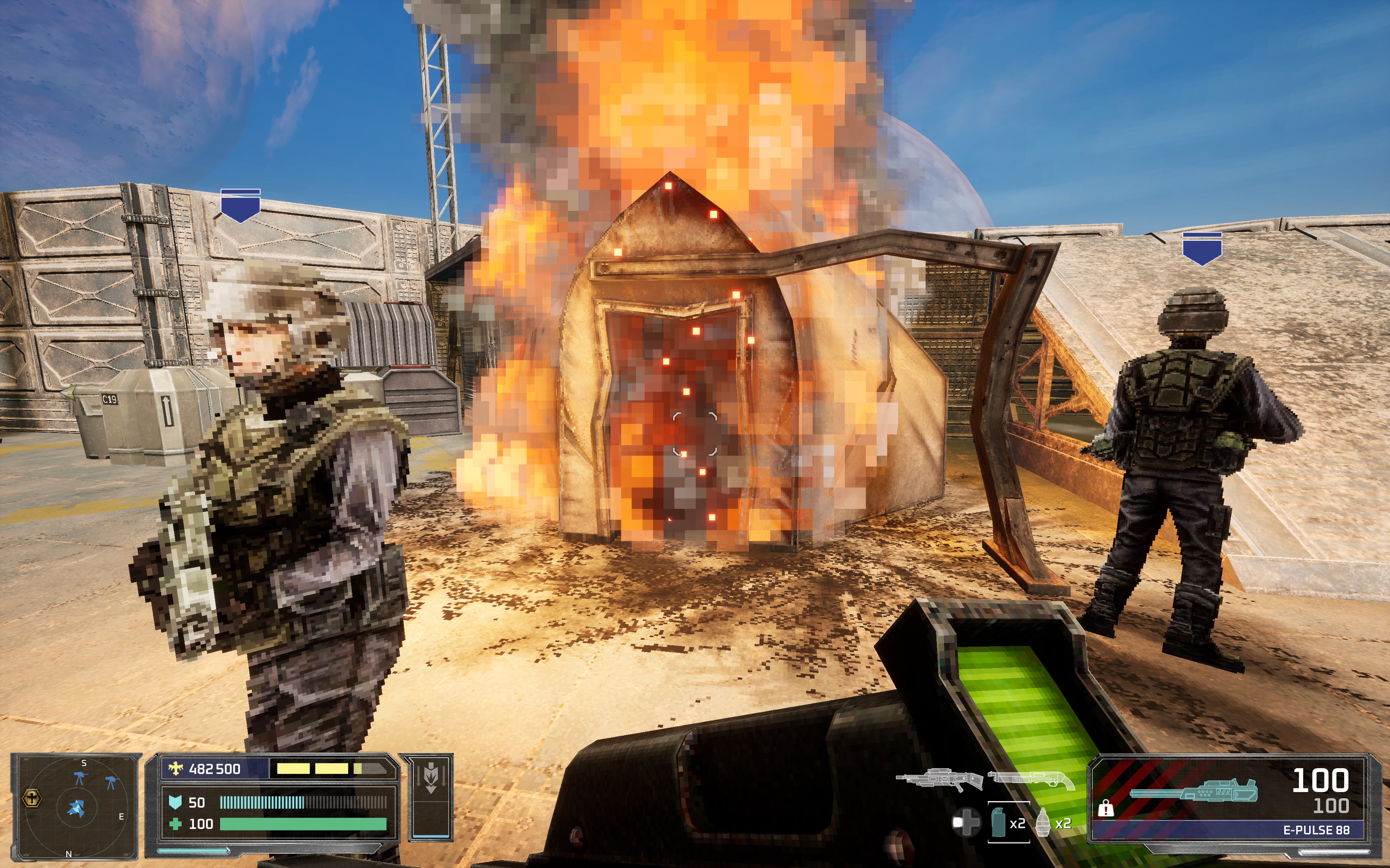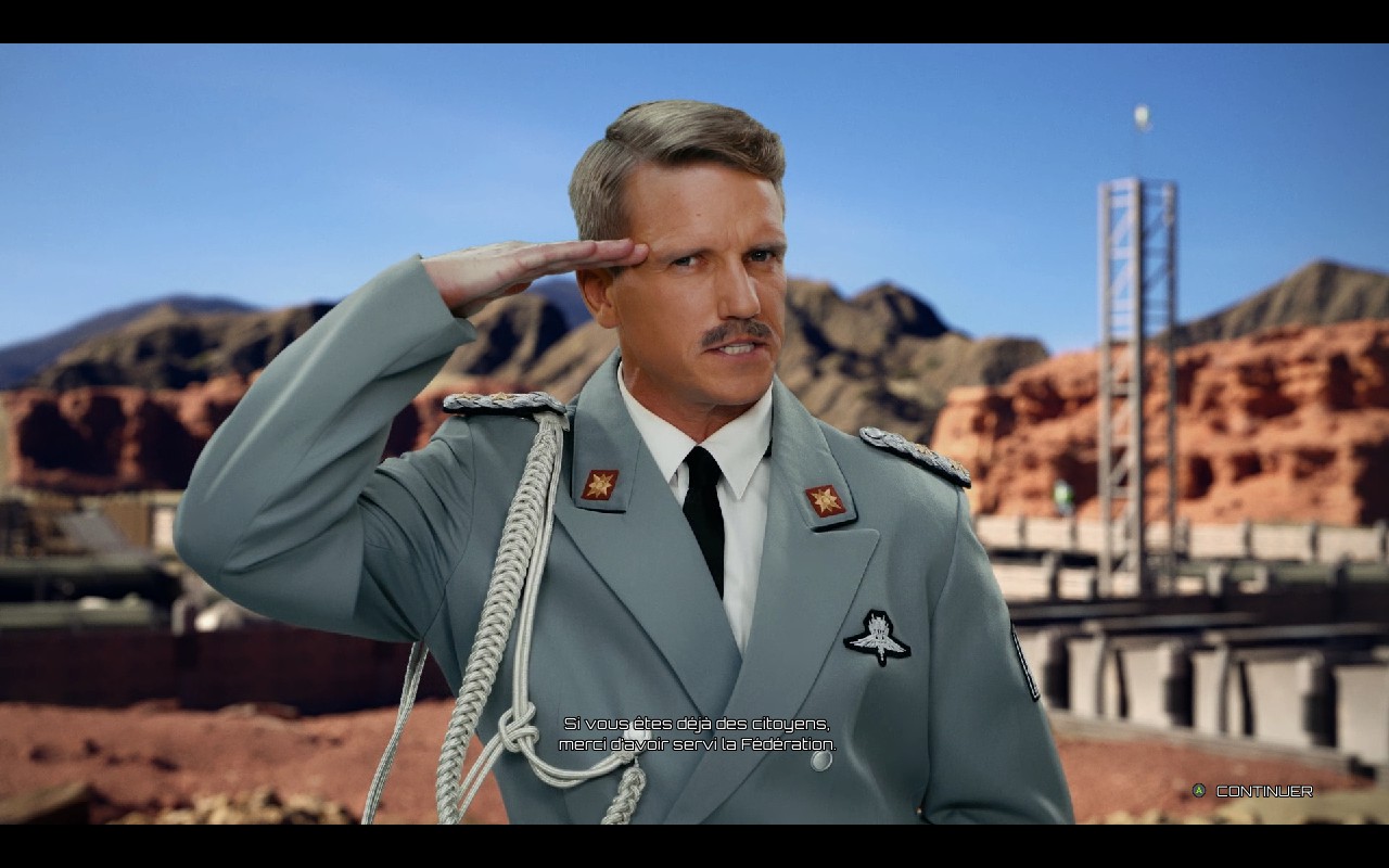 Visuellement, je ne vais pas y aller par quatre chemins : STUBW ne plaira clairement pas à tout le monde. Pour ma part j’ai adoré le parti pris artistique, mais il ne fait aucun doute que le rendu affiché laissera plus d’un joueur sur le carreau. Effectivement, au-delà de l’esthétique faite de gros pixels et d’aliasing assez violent, les développeurs ont choisi de mixer une 3D des années 2000 avec… des personnages en 2D façon DOOM et Duke Nukem. Une décision aussi audacieuse qu’assumée, et qui ne laissera donc personne indifférent. Autre subtilité : les cinématiques sont ici proposées à la manière de Command & Conquer, c’est à dire sous forme de briefings en FMV (pour « Full Motion Video »). On y croise par exemple Johnny Rico (le héros du film de 1997), toujours incarné IRL par le comédien Casper Van Dien, 57 ans.